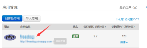 登陆SAE,在"我的首页"处点击任意php应用,进入"应用管理":