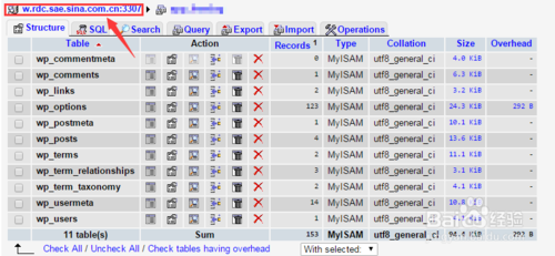 1. 在"PHPMyAdmin控制面板"里面点击"w.rdc.sae.sina.com.cn:3307":