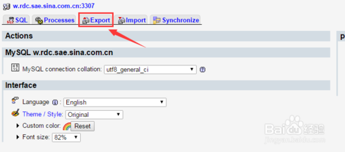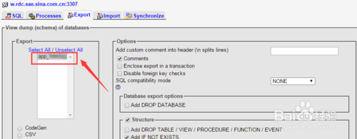 1. 选中数据库名称,点击"Go"按钮执行,完成后会下载一个名为"w.rdc.sae.sina.com.cn.sql"的文件: