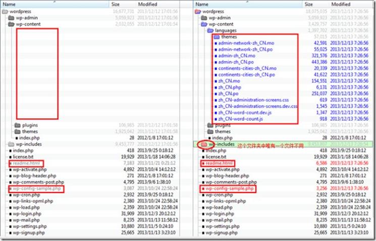 不过既然有便利的中文版,也有令人放心的官方版,我何不做个比对。于是两份我都下载了copy,比较了一下,发现的确如文章所讲,核心文件都是一样的,相差只是一丁点儿而已。不信的童鞋请看对比图。