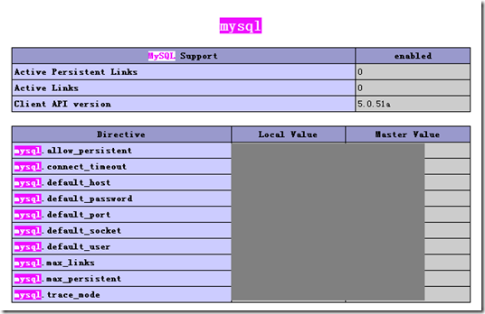 那么要怎样判断呢?我去仔细查看了phpinfo()运行出来的结果,发现在这些模块中根本没有显示mysql这个扩展
