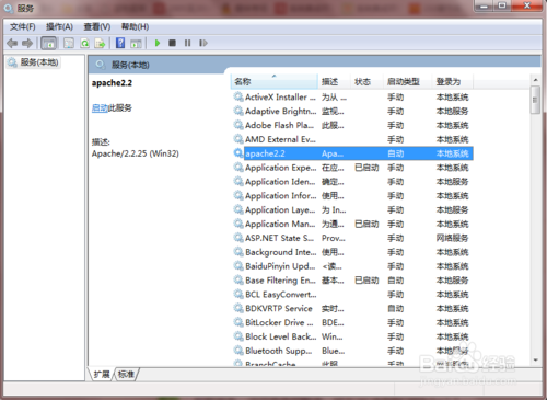 可以通过系统服务搜索apache2.2服务,删除成功则找不到
