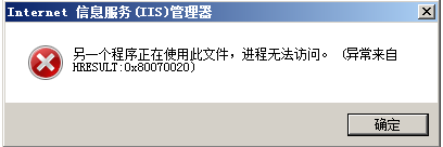 iis提示"另一个程序正在使用此文件,进程无法访问。(异常来自HRESULT:0x80070020) "解决办法