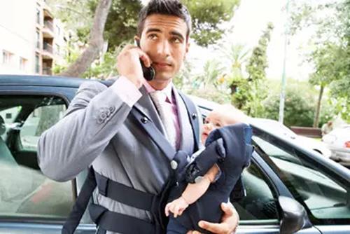 像这样用婴儿背带带孩子出门的潇洒父亲,中国并不多见