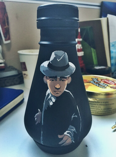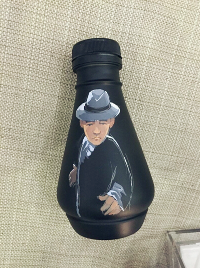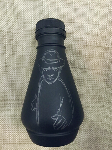 给瓶身均匀喷漆后晾干,然后作画。先用铅笔打底,瓶身是不平整的,所以很考验画画功底。
