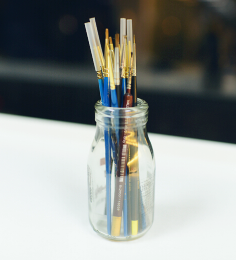 空奶茶瓶、丙烯颜料、铅笔、橡皮、清水