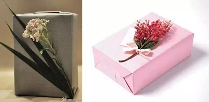 4)花色包装纸+花/纯色丝带(这种low爆了……挂彩率太高,我就不说了,你们自己感受下5)包装纸+其他装饰物