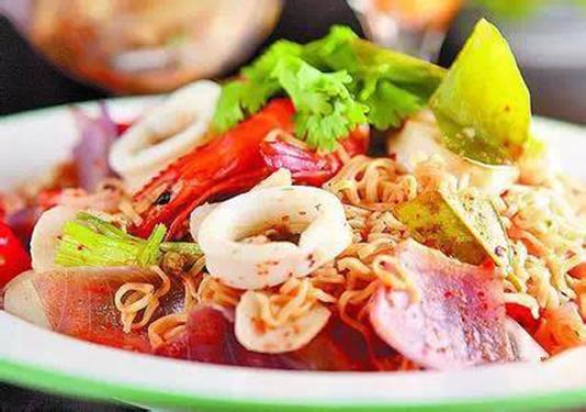用方便面配合些蔬菜、水果,做一盘沙拉,能够让你优雅地享受几种不同口感在嘴里混和的快感。