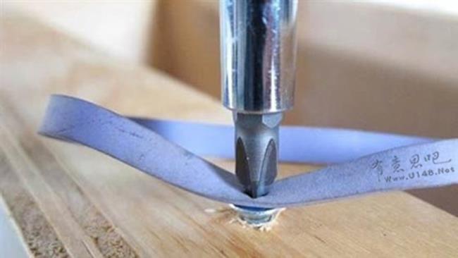 8、把皮筋放到螺丝帽上再用螺丝刀拧开会比较省力。