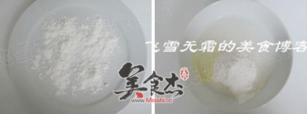 3.玉米淀粉倒入盘子上,铺均匀,用微波炉转熟