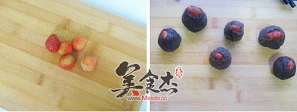 草莓六个、豆沙50克、玉米淀粉15克、糯米粉80克、水80克、植物油8克