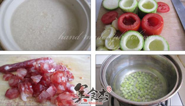 1.将大米洗净,加水浸泡30分钟,放入砂锅煮熟后,加入腊肠丁,焖十分钟