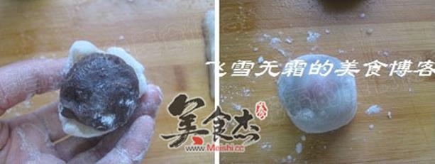 2.外面包上豆沙馅,大概四分之三高度。