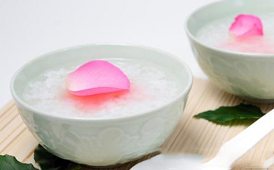 清明节吃桃花粥也是传统民俗之一。《云仙杂记》:"洛阳人家,寒食装万花舆,煮桃花粥。"将粳米煮粥,粥熟,放入桃花瓣,稍沸即可。桃花有美颜色的功能,也能改善胃热便秘的人。脾胃寒的人要少放桃花,点缀即可。