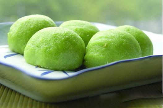 清明节传统美食:青团子是用一种名叫"浆麦草"的野生植物捣烂后挤压出汁,接着取用这种汁同晾干后的水磨纯糯米粉拌匀揉和,然后开始制作团子。青团子油绿如玉,糯韧绵软,清香扑鼻,吃起来甜而不腻,肥而不腴。