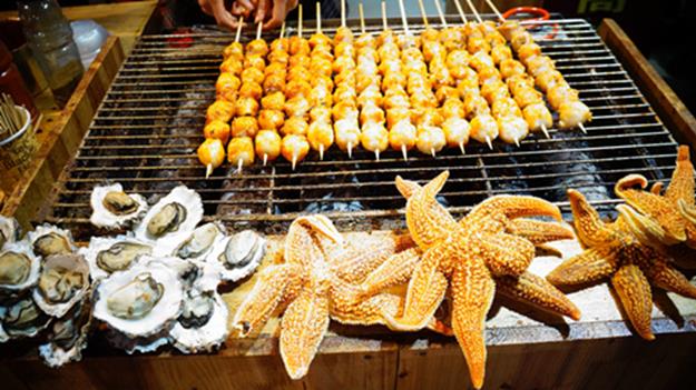 一起去登州路吃烧烤,穿着裤衩背心,吃完了我们就去逛台东夜市。