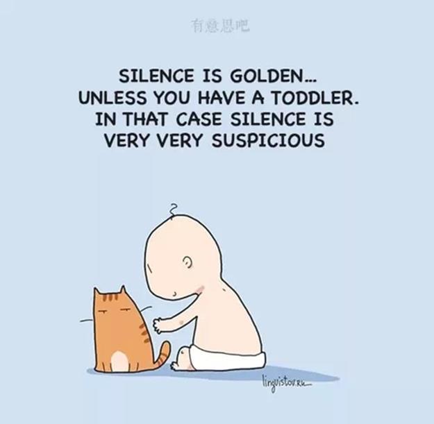 12、沉默是金,除非你身边有个小P孩儿。如果小P孩儿沉默的话,状况就非常非常可疑了。