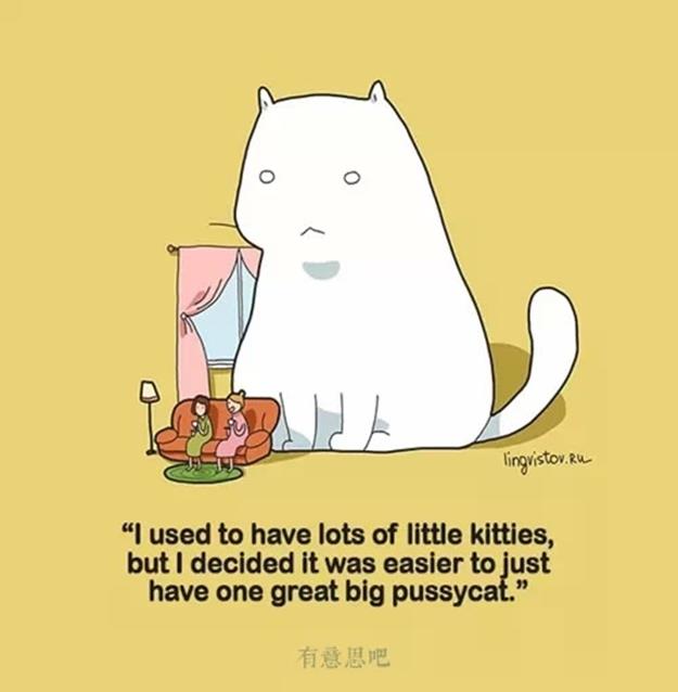 7、过去我拥有很多很多小猫咪,但现在我只想要一个实实在在的,大的!