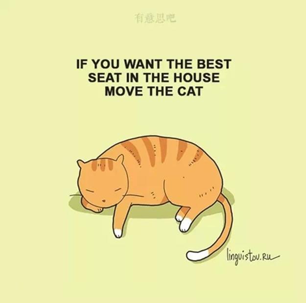 10、如果你想坐在屋子里最好的位置,把猫挪走。