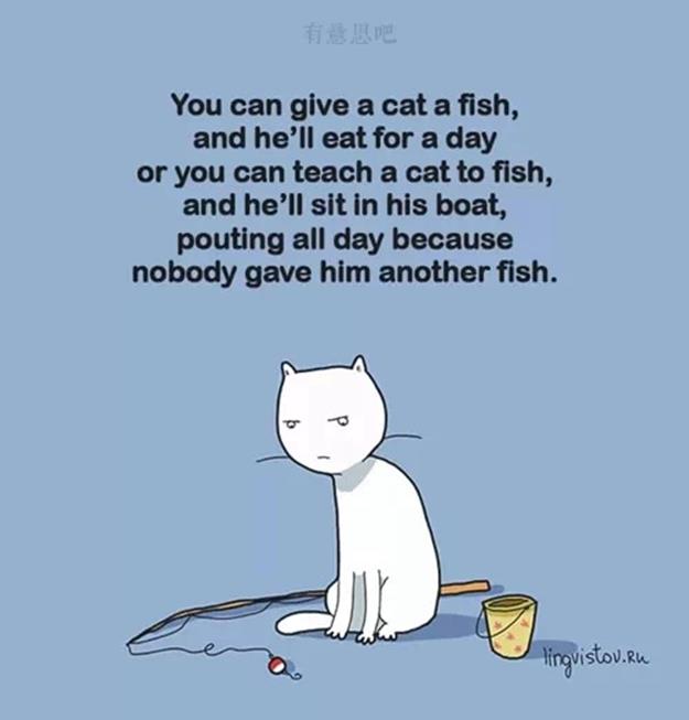 9、你可以授猫以鱼,那它就会高高兴兴吃上一整天。你也可以授猫以渔,那它就会安静地坐在船上忧郁一整天,因为没有人再给它第二条鱼%……#&……#%……%