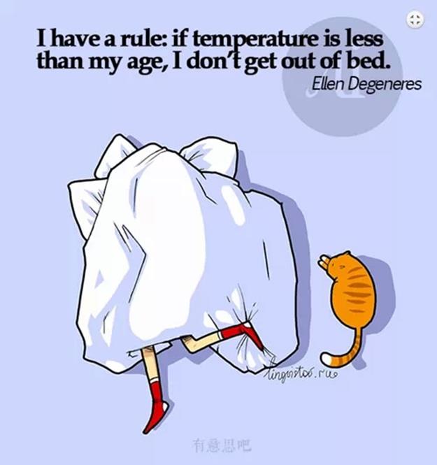 19、我做人是有原则的:如果气温数字比我的年龄还小,那我今天就不起床了。