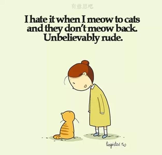 17、每次我冲着猫喵喵叫,猫却从来不会喵喵回复,太没有礼貌了!