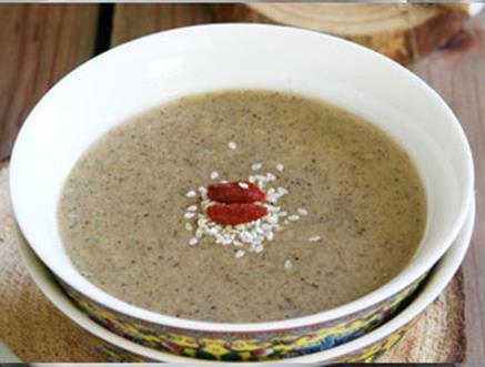 制作:将黑芝麻与浸泡过的黄豆入入豆浆机杯,开动豆浆机自动完成