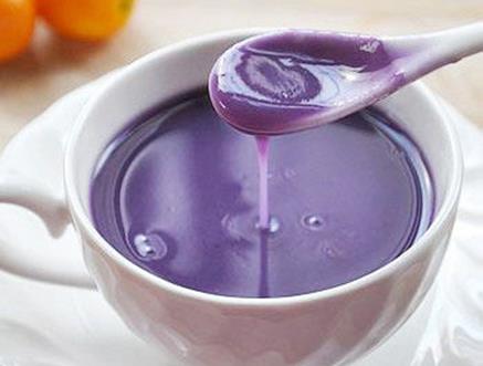 2. 将浸泡过的紫薯、大米、水加入豆浆机中,制成米糊。