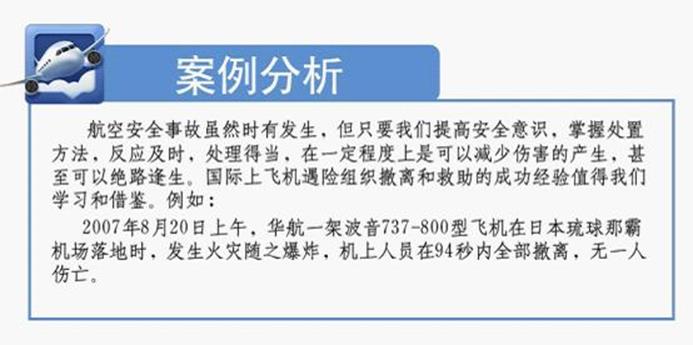 这些在紧急时刻能救命的提醒和忠告是许多人用鲜血和生命换来的,希望大家搭乘飞机时要切实重视并遵守。