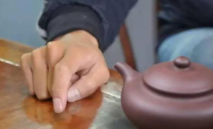 食指中指并拢,敲击桌面,相当于双手抱拳作揖。敲三下表示尊重。