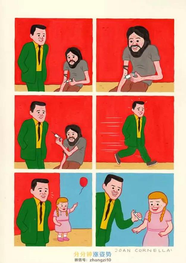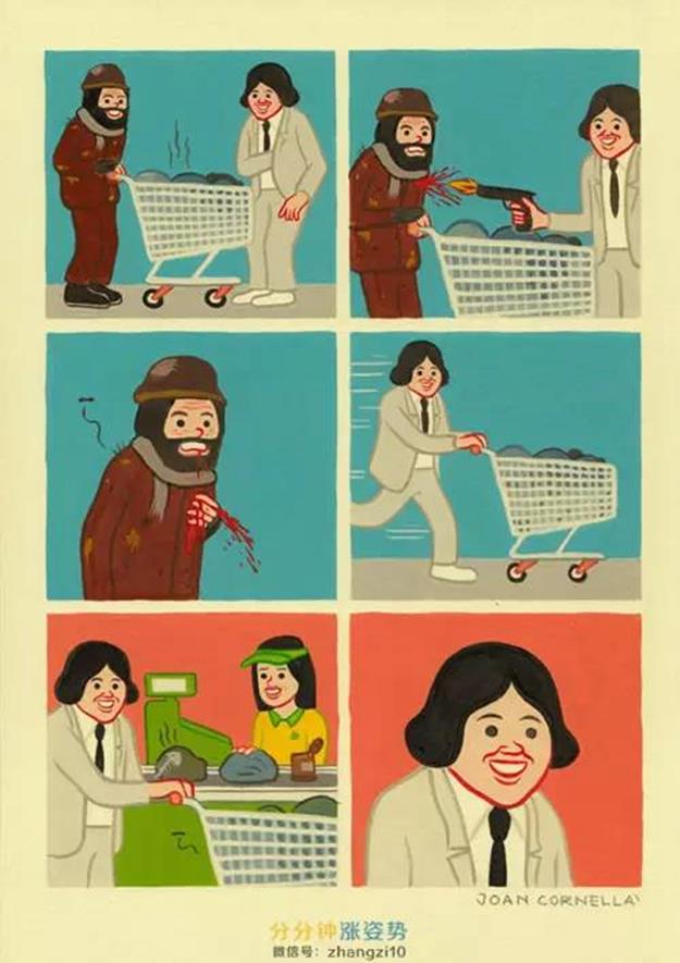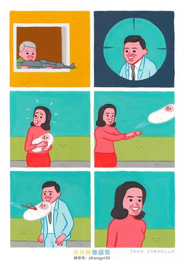你说他是超级牛逼的讽刺画手也好,说他是心理阴暗的神经病也好,JOAN CORNELLA绝对是这个世界上脑病最严重的漫画家。