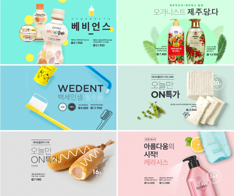 emart网站banner在辅助图形的应用上特别广泛,一来增加画面丰富性一来强化产品特性。主要是提取产品相关的元素进行图形化,有小面积的纯属强化功能或增加趣味性的添加、也有大范围的对产品纹样或特性的延展。主要还是在产品特点基础上进行提取。