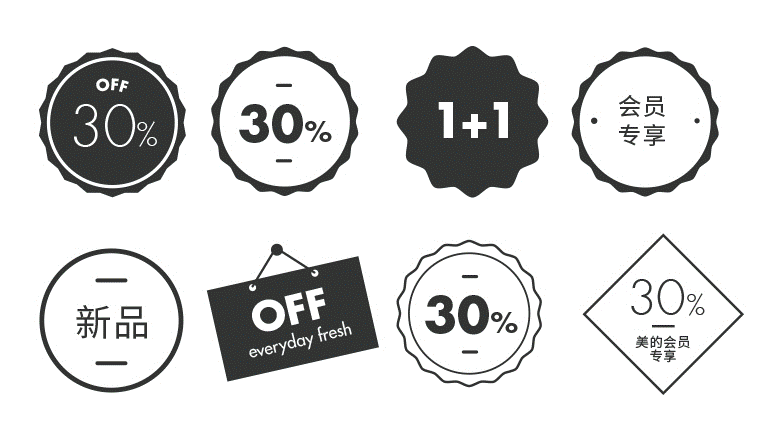 在banner标签应用的样式上也很丰富,在类似样式下所衍生出的演变很多,根据banner特点进行不同配色、时而实底、时而镂空、或黑白搭配,演绎出很多可能性。