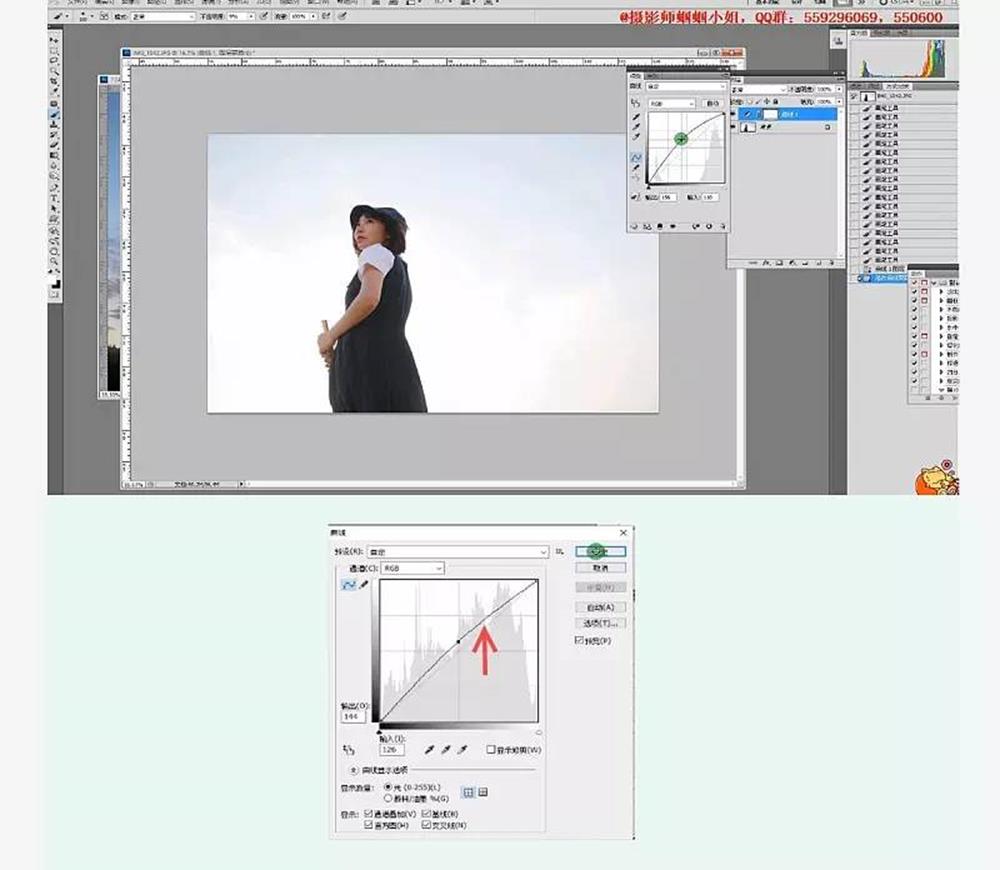第一步:原片稍微有点暗,使用曲线对照片整体提亮。