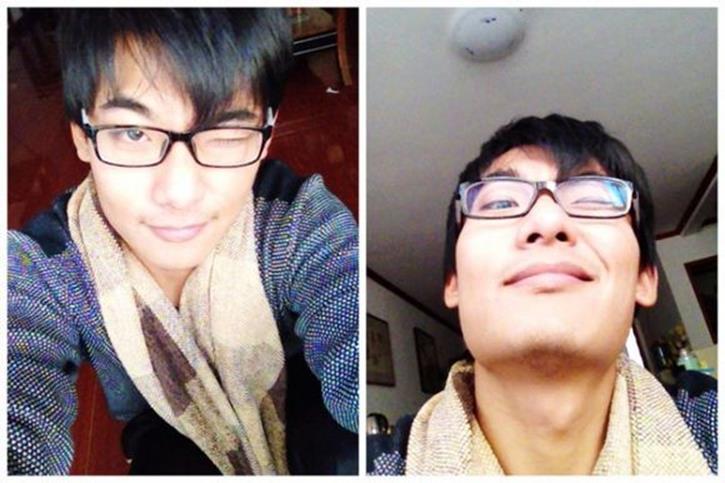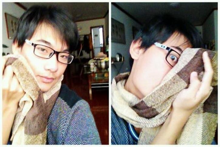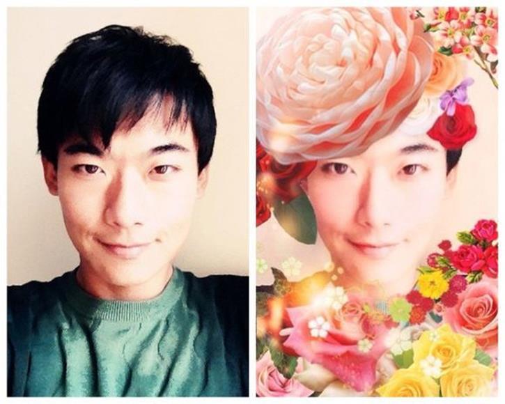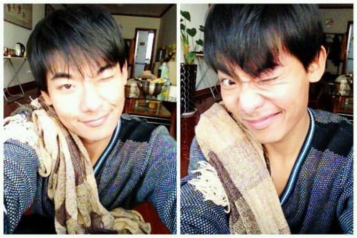 破解之法:首先构图要活泼一点。正儿八经站在照片中间仰起脸就像非洲图腾柱,你要歪下头,好像不小心滑了一跤一样眯起一只眼睛,然后故意手抖,这模糊的效果最能彰显大男孩性感率真的本性。眯眼的秘诀是眯距离地面近的那一只,否则地心吸力会把你弄得像右图一样。