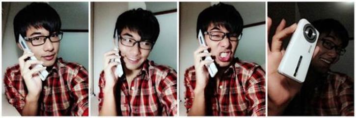 8.接电话时怎么拍照片?如果你是可爱小女孩,请参看左一,瞪大眼睛看镜头;