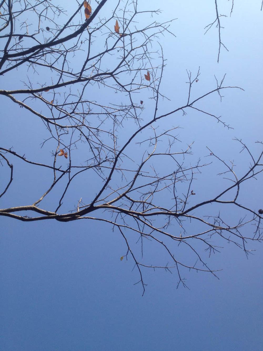 看一下这张,就是移步到树的旁边,抬头看天空,上面有一些发射线的树枝,还有一片非常蔚蓝的天空。