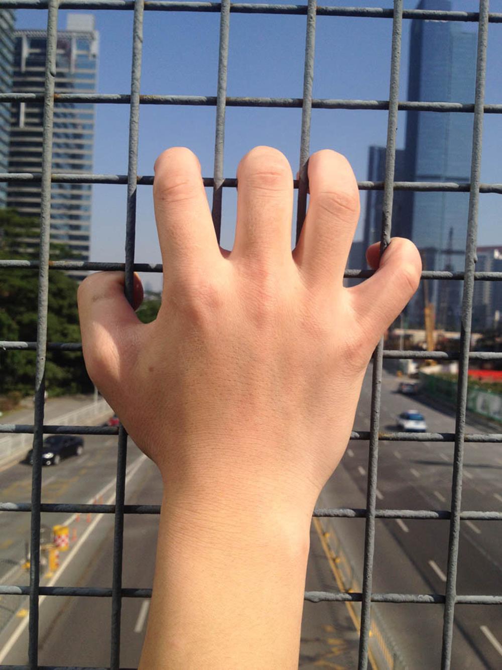文章的最后送上一张手机随手拍。地点是横跨马路的人行天桥。我看到有点儿网,那就顺手创作一下。