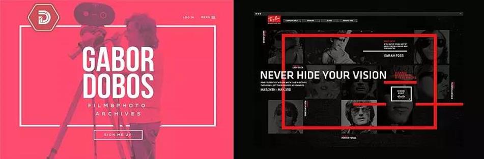 在复杂而多的海报或者网站架构中,利用方框进行信息引导是非常有效而且新颖的表现方式