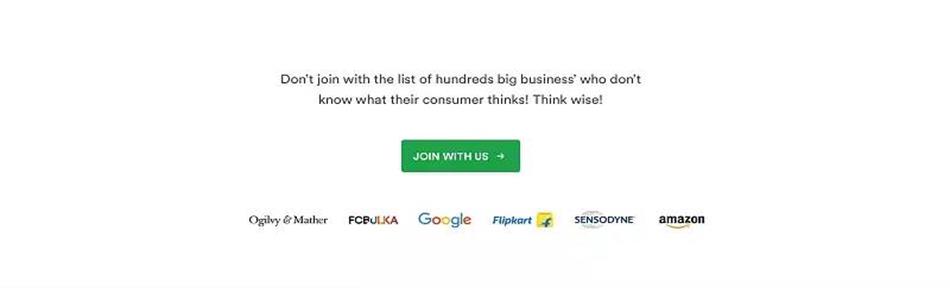 下面是网站中一段引导语,采用浅灰色的背景加上文字在一起,加上一定的留白,整个画面显得洁净而优雅。 设计师在这里采用方形元素来设计了实心按钮,使用户对新页面起到了引导作用。