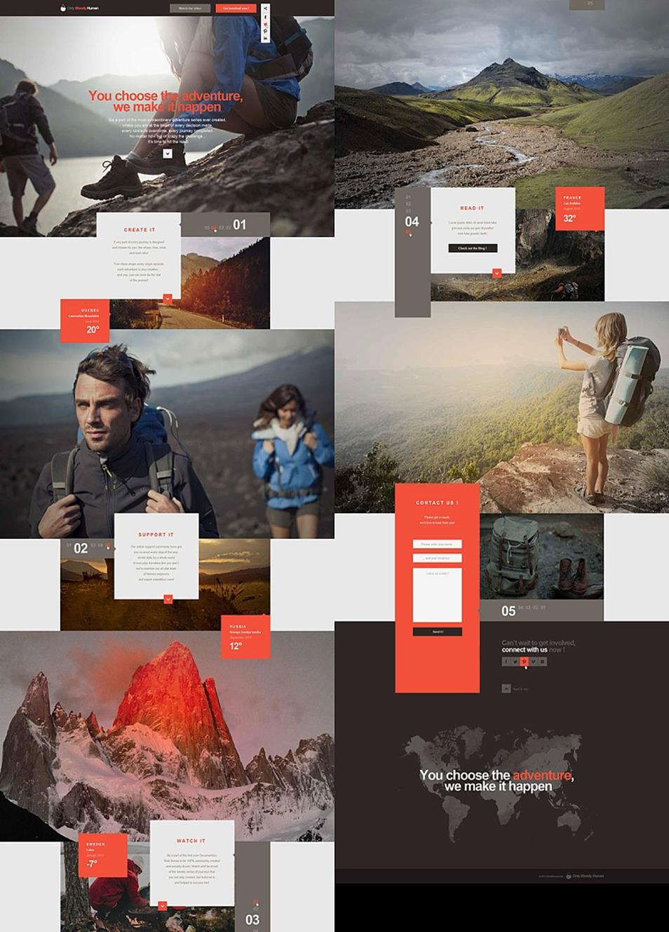 下面是一个旅行网页。整个网站用了大面积的方形元素,利用这些方形的大小和改变长宽比例来错列排版。