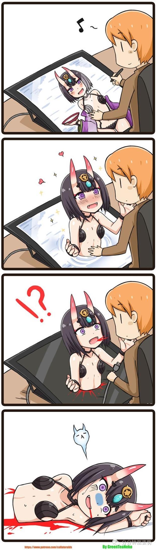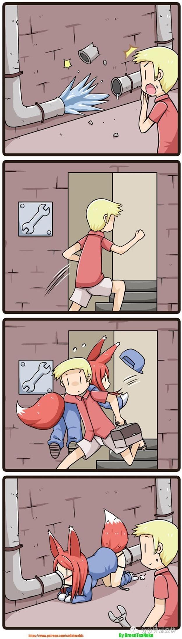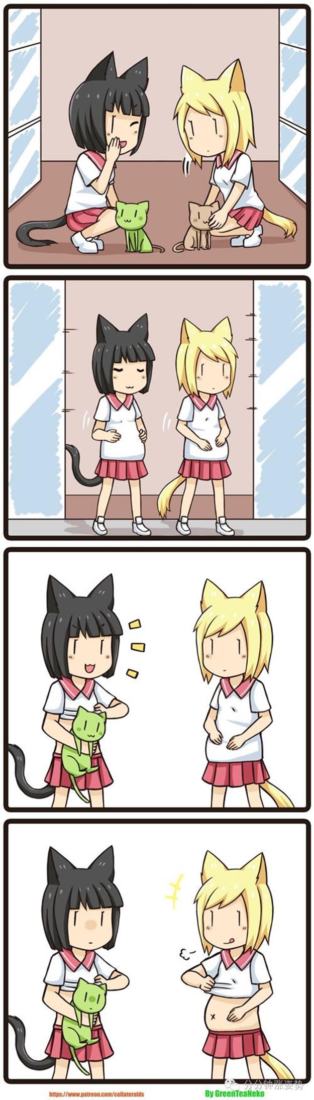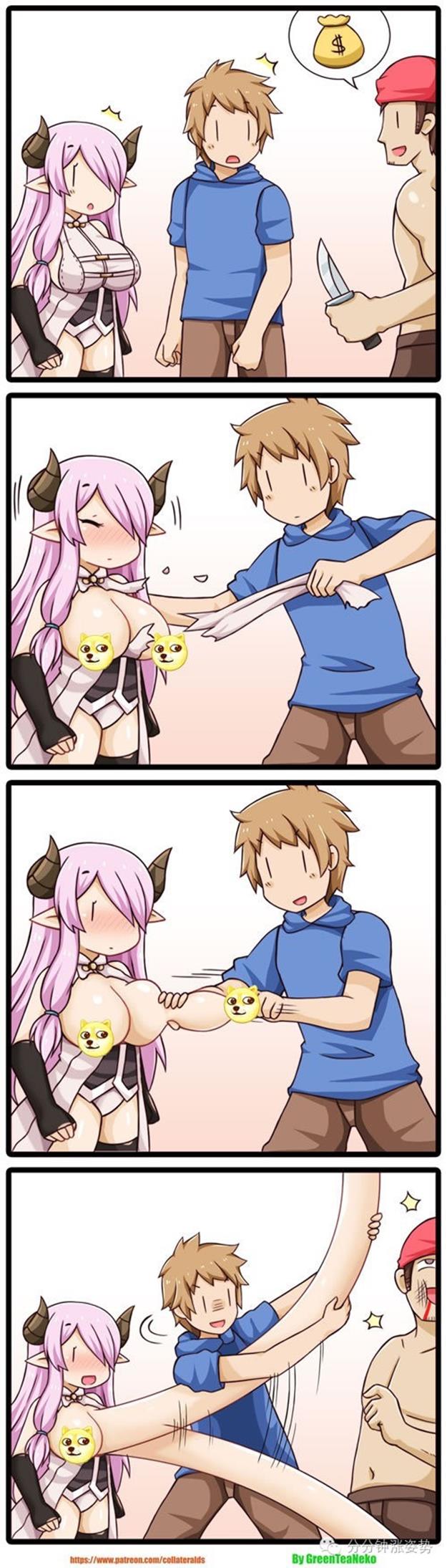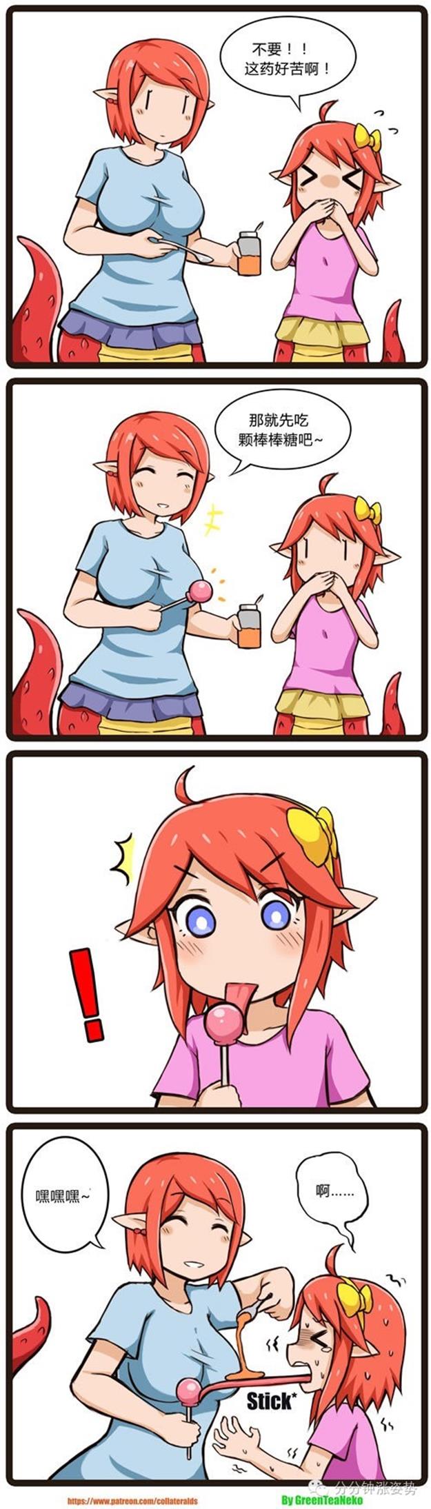 好吧,今晚给大家准备的,依然是这位来自国外奇奇怪怪众筹网站Patreon上的奇葩脑洞漫画家 GreenTeaNeko 的魔物娘四格系列。