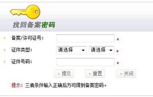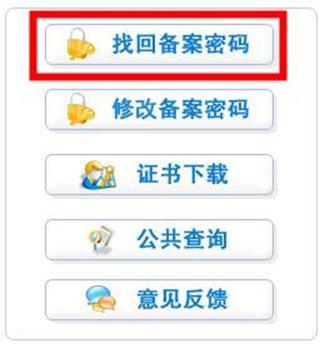 第二步:登陆当地通信管理局页面后,点击右下方"找回备案密码"按钮。
