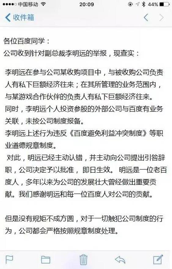 最后,说说最近发生的,百度"太子被废",李明远辞职一事。