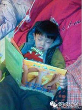 所以每次买书,因为都是他喜欢的,所以,他都如获至宝,爱不释手,因此他对阅读一点负担感和任务感都没有,而是一种喜悦,一种享受。手不释卷可以到哪种程度,就是睡着了,也不撒手!
