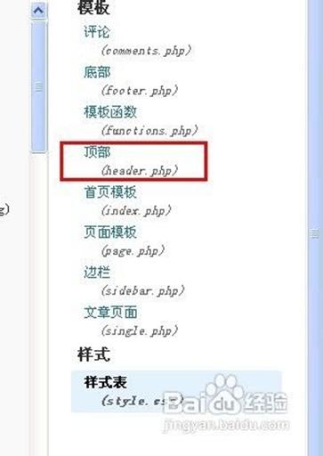 然后在编辑主题的右边,找到header.php文件,如图点击打开