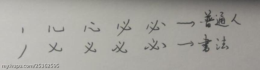 写字无非是口传心授,有一些笔法和笔顺,可以找个老师,或者上网看视频(初学者,可以看田蕴章老师讲的每日一题每日一字)。有些笔顺,外行根本想象不到,内行人一看就知道你有没有入门。仅举一例,必须的必字。99%JR是用的第一种写法;实际上,书法的必,笔顺是第二种写法。