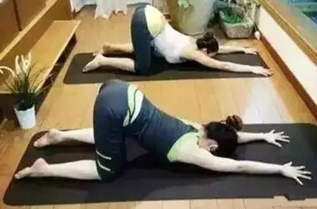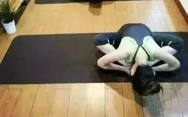 跪着,双手和上半身尽量贴地,拉伸肩部及整个腰背部脊柱。