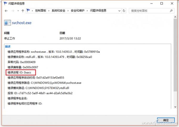 如果有Windows停止响应的错误(svchost.exe、explorer.exe),选择"查看技术详细信息",如果有"错误进程ID"显示的是129的话,就继续要开始注册表之旅了,如果没有,那出现卡顿的问题就要具体情况具体分析了。