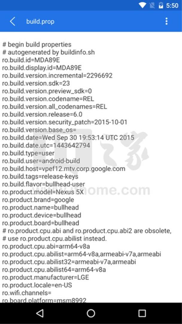 大家可以看到,这个文件的内容格式比较简单,每一行都是XXX=XXX的结构,等号前面是build.prop中的项,等号后则是该项的数值。这个文件中包含制造商信息、设备代号、设备型号、系统版本、SDK版本,系统编译日期以及各种乱七八糟的设置。